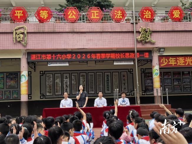 新学期伊始,为进一步加强青少年法治教育,筑牢校园安全防线,3月2日,赤坎法院刑事审判庭副庭长周玮玥法官以法治副校长身份走进湛江市第十六小学,以“做自己的小卫士,做守法的小公民”为主题,为全校1800余名师生带来一堂生动有趣、干货满满的“开学第一课”。