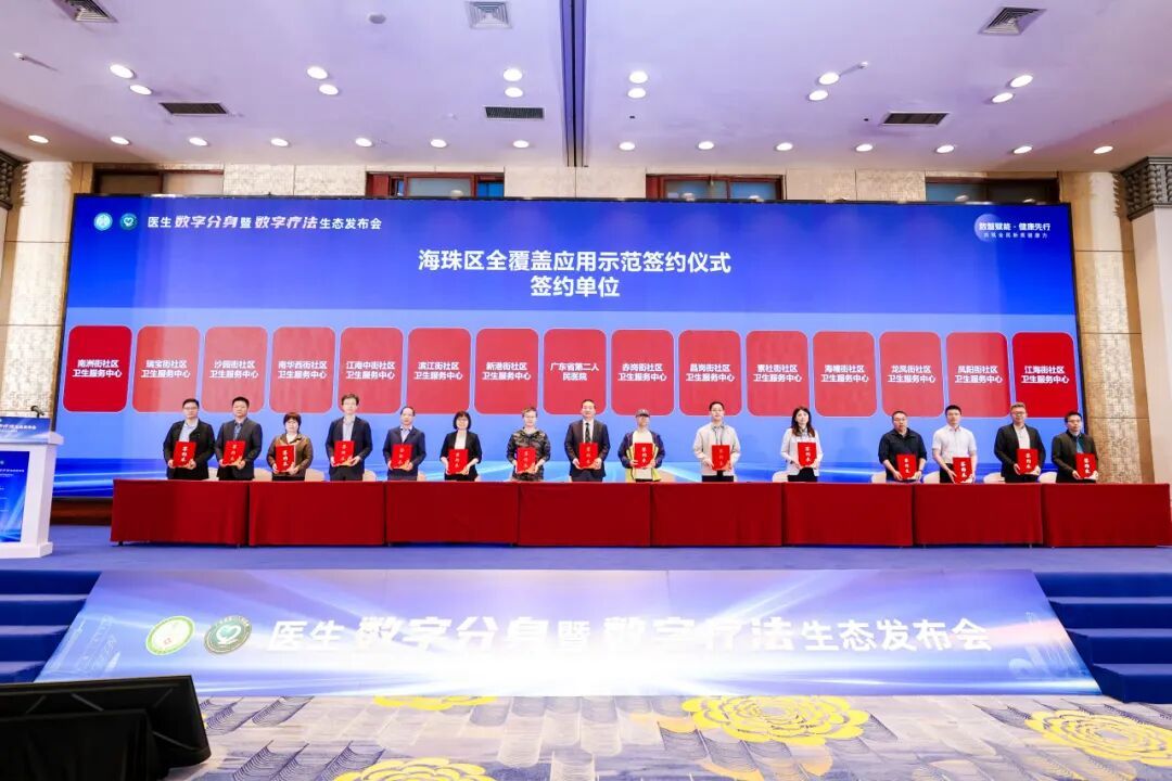 会上,还举行了海珠区全覆盖应用示范签约仪式。省二医与海珠区赤岗街等14个社区卫生服务中心共建合作,积极推动创新应用下沉基层社区。