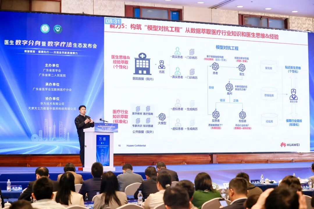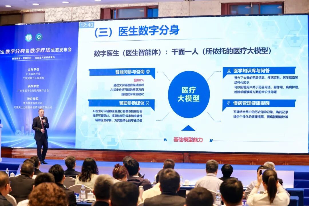华为广东政企副总经理王磊表示,华为与广东省第二人民医院的长期合作,通过医生数字分身项目,展示了技术与医疗的深度融合。依托昇腾算力底座与海量医疗数据,双方构建了从数据治理到场景落地的解决方案,旨在将优质医疗服务以更低门槛输送至基层,推动医疗服务从疾病治疗向主动健康管理转型,为分级诊疗与健康中国战略注入智慧动能。
