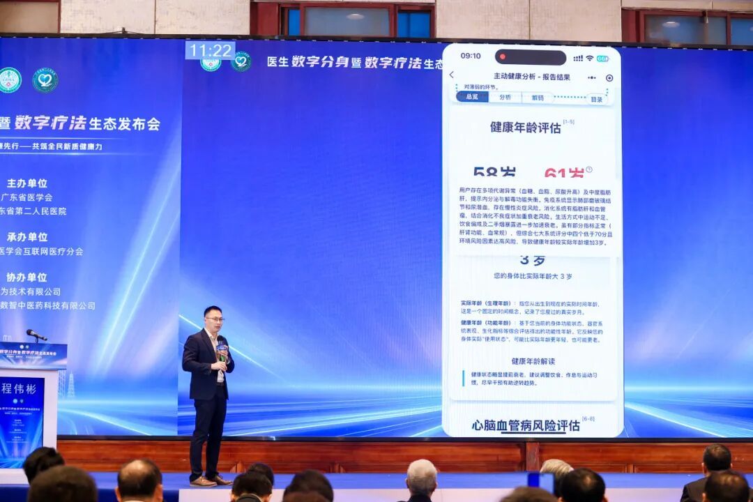 △广东省第二人民医院首席科学家、健康管理研究所所长田军章教授作《医生数字分身暨数字疗法生态》的主题介绍
