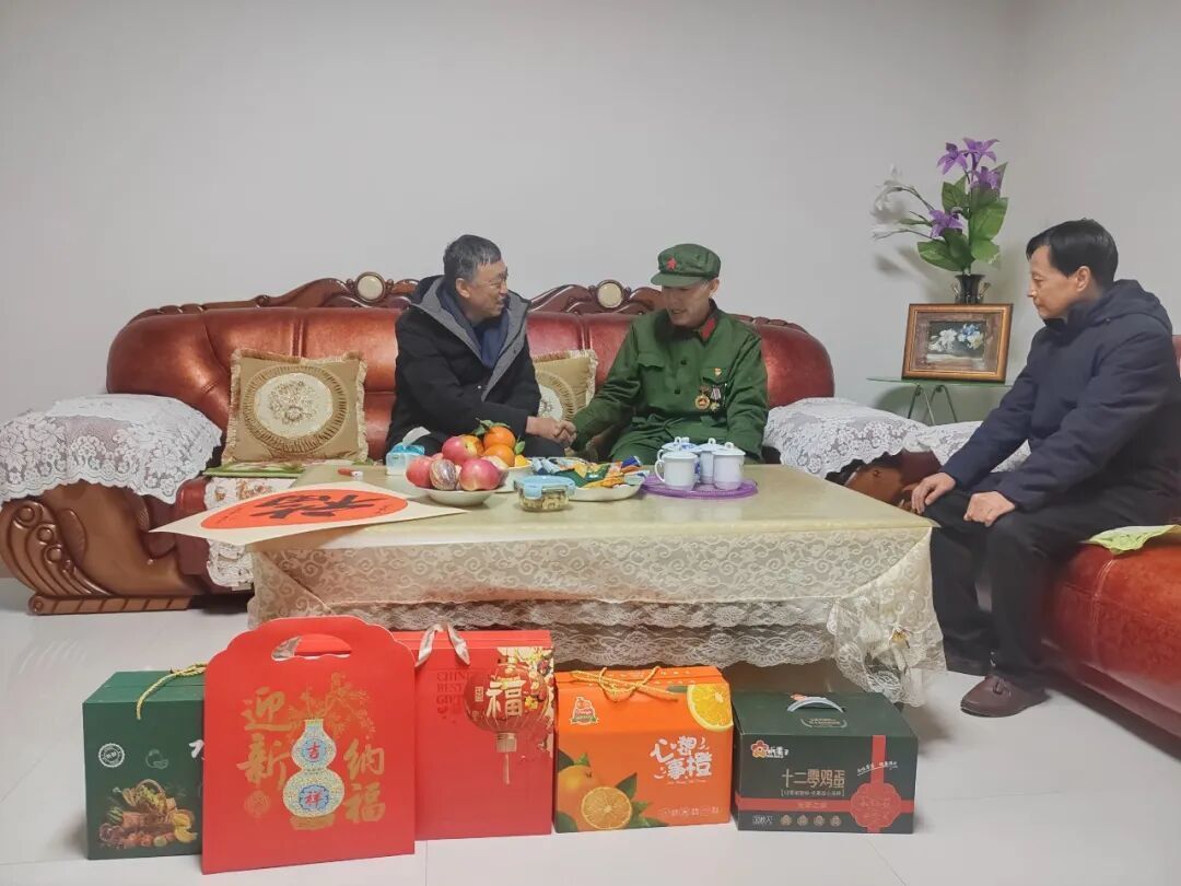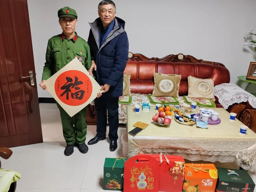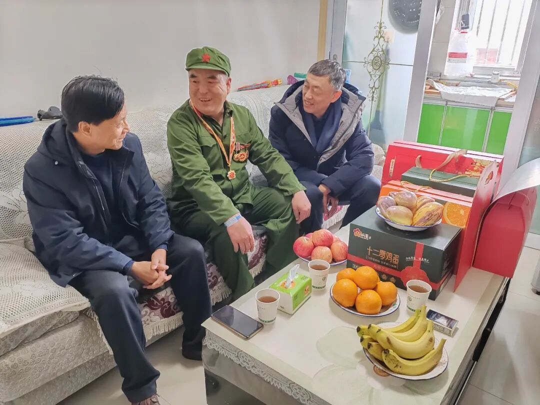 随后,又一同慰问了居住在民勤,参加对越自卫防御作战中荣获一等战功的常绪元和二等战功的靳学智。会长刘海东亲切慰问两位老班长及家属,与他们亲切交谈,详细了解身体近况与生活情况,并送上新春大礼包,致以诚挚的新春祝福。